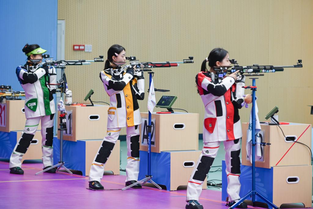 女子10米气步枪团体决赛相通悬念迭生。靠近号称“王炸”的浙江队韩佳予、黄雨婷、王子菲,由彭鑫露、管佳妮、刘汝璇构成的湖南队差点爆冷。在“抢16分”赛制下,两边六次打平。在12:12的关键本领,前一天刚打出跳跃宇宙记录成绩的浙江队三东谈主无一发舛错,连下两城卫冕成效。